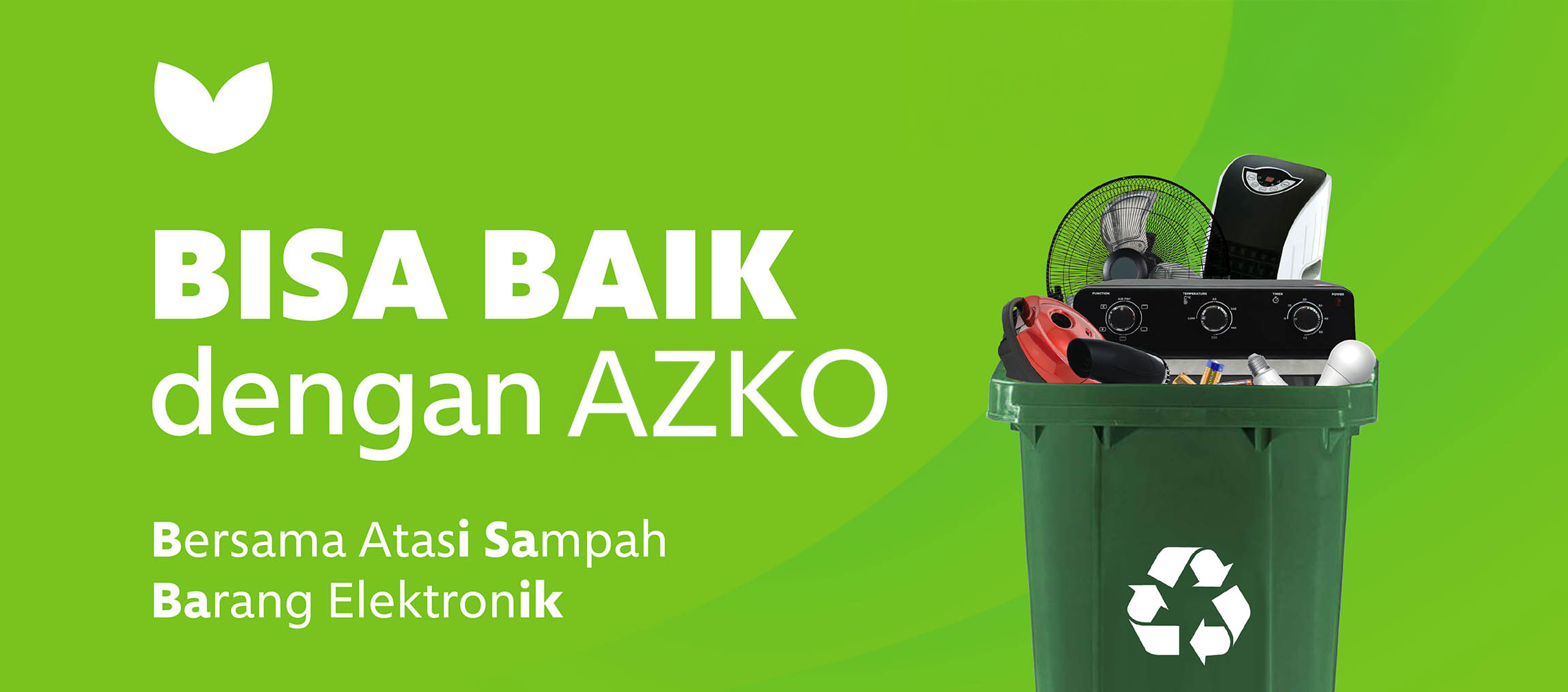 Mulai dari gerakan kecil membawa sampah elektronik ke dropbox BISA BAIK di toko AZKO Indonesia terdekat, untuk menjaga bumi lebih baik.