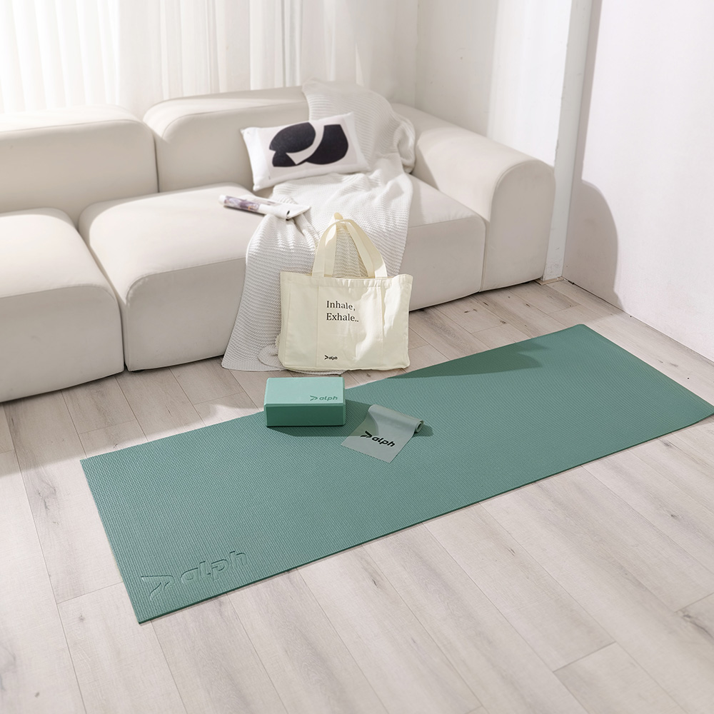 To ensure your session is safe from injury, make sure to use the Alph Set Yoga Kit. This all-in-one set includes an anti-slip PVC mat, a yoga block to support your poses, a yoga strap to improve flexibility, and a dedicated bag for easy storage.