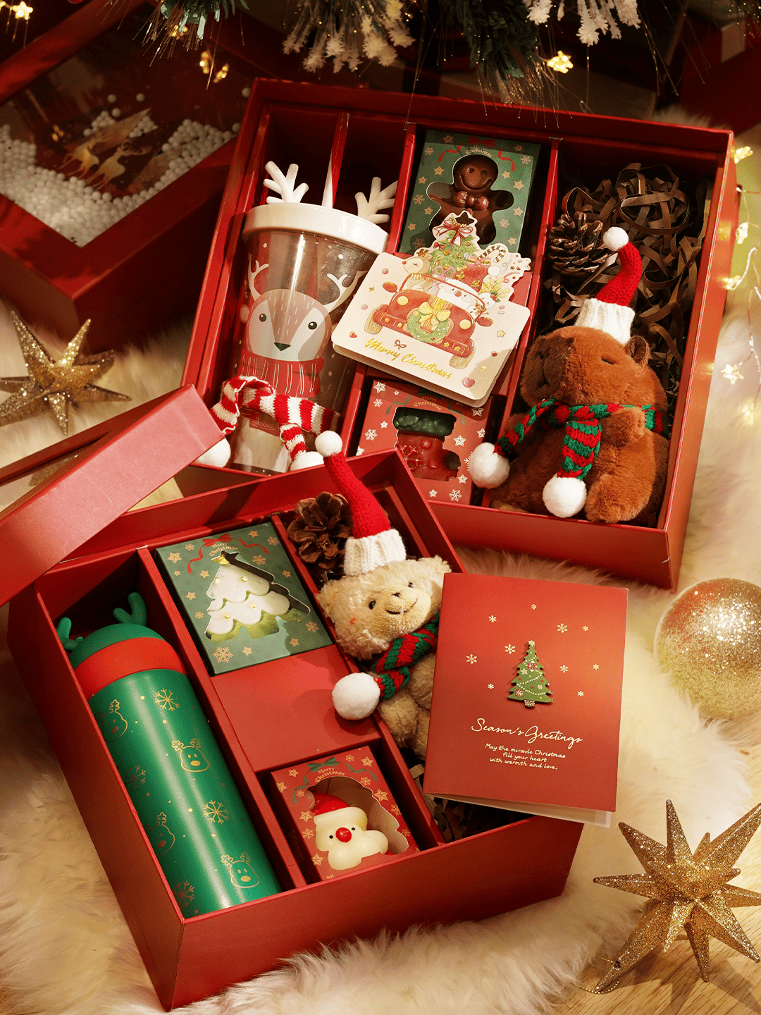 Setiap hampers memiliki elemen mengejutkan dan menyenangkan di dalamnya! Cocok banget kan untuk dijadikan kado Natal.