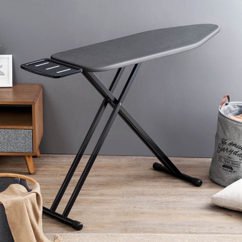 For ironing, use the Stora Ironing Board, which has a smooth fabric-covered surface and a sturdy metal frame. It also has an adjustable height mechanism, with a maximum height of 91 cm and a maximum length of 145 cm.