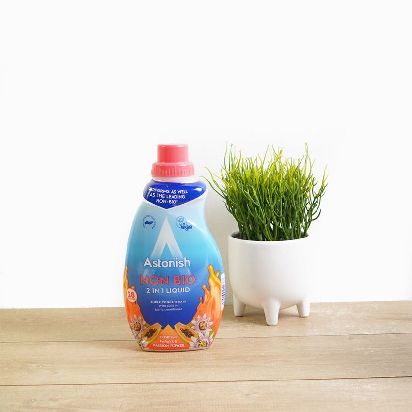 You can use Astonish Liquid Detergent, which has a concentrated formula that effectively removes stains and eliminates odors. This detergent also contains a built-in softener, so there’s no need for an additional fabric softener. It comes in two fragrances: Lavender Ylang Ylang and Tropical Papaya & Passion Flower.