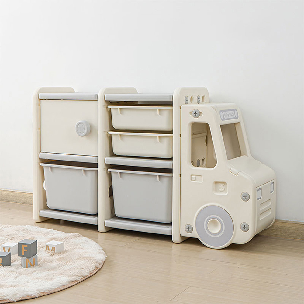 Agar mainan anak selalu tertata rapi pada ruang bermainnya, pastikan kamu memiliki tempat penyimpanan khusus untuk mainannya. Supaya lebih menarik bagi anak, kamu bisa pilih tempat penyimpanan yang sekaligus bisa jadi area bermainnya seperti Stora Rak Penyimpanan Anak Playbin Truck. Rak penyimpanan ini didesain berbentuk truk yang dapat jadi area bermain tambahan anak tetapi juga bisa menyimpan berbagai barang mulai dari mainan, pakaian dan lainnya. Terdiri dari beberapa laci besar dan kecil dengan kaki rak yang stabil dan kokoh.