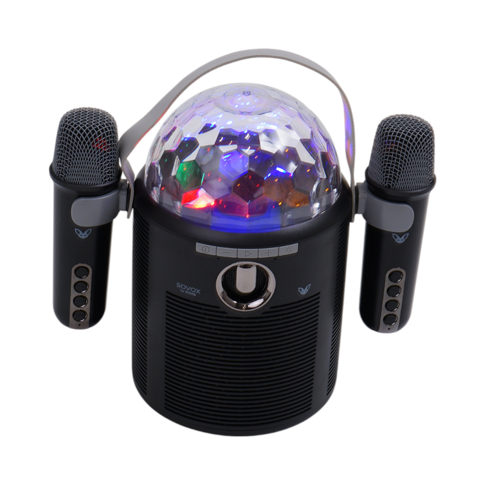 Untuk kamu yang ingin karaoke di rumah, Sovox Speaker Karaoke Bluetooth Led 2 Mic adalah andalannya. Speaker bluetooth ini dilengkapi 2 mic wireless dengan 11 mode cahaya dan 6 mode suara yang unik. Ditambah lampu LED di bagian atas speaker yang menambah atmosfer karaoke semakin seru. Untuk menyetel lagu, kamu bisa menghubungkannya melalui bluetooth, AUX, USB, radio FM, dan micro SD. Dilengkapi pegangan untuk mobilitas yang mudah saat dibawa bepergian. Waktu pengoperasiannya panjang hingga 8 jam dengan volume 50%.