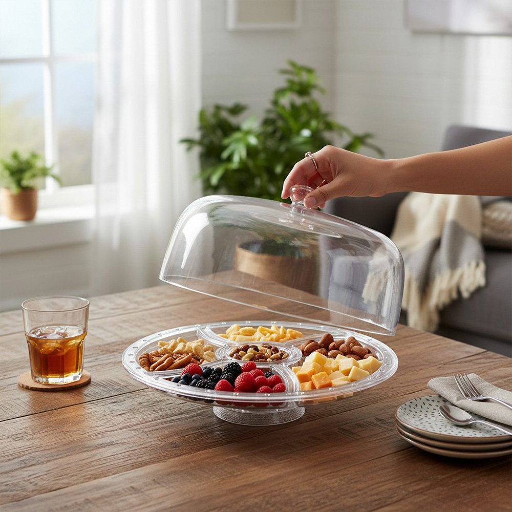 Untuk menata berbagai hidangan khas Imlek, Culinart Wadah Saji Kue Kaca Multifungsi 6 In 1 Transparan bisa menjadi pilihan praktis sekaligus estetik. Wadah ini dirancang dengan 6 kompartemen yang memudahkan penyajian aneka kue khas seperti kue keranjang, lapis legit, kue mangkok, hingga berbagai camilan favorit lainnya. Material kaca transparan membuat isi wadah terlihat jelas dan menggugah selera, sekaligus membantu ruang tamu tetap terlihat rapi dan tertata. Dilengkapi tudung yang tinggi dengan handle  yang ergonomis agar mudah mengangkat tudungnya. Dengan satu wadah saji, jamuan Imlek pun terasa lebih praktis, bersih, dan siap dinikmati kapan saja.