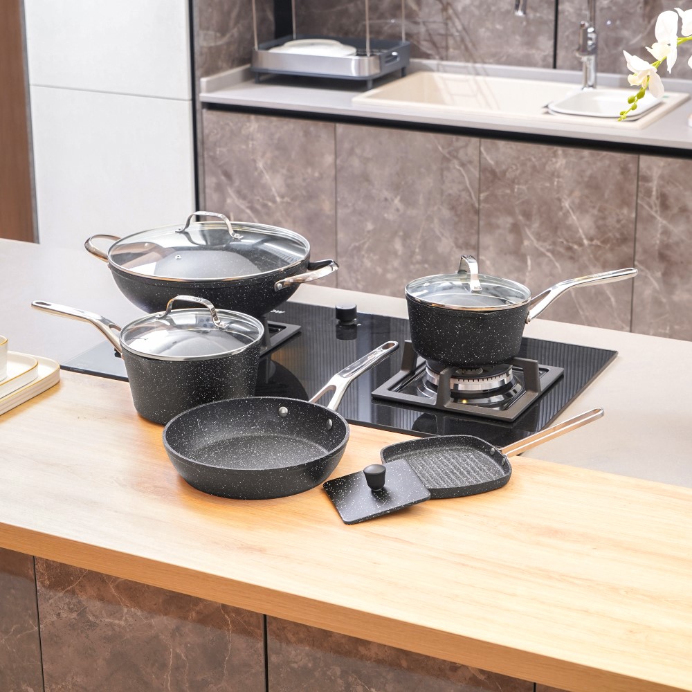 Agar memasak menjadi lebih menyenangkan, Starfrit Set 5 Pcs The Rock Perlengkapan Masak sebagai pilihan lengkap untuk berbagai kebutuhan memasak. Dilengkapi lapisan anti lengket dengan teknologi rock yang anti gores, set ini membantu penyebaran panas yang cepat dan merata sehingga masakan akan matang dengan optimal. Terdiri dari wajan, saucepan, wajan penggorengan hingga wok pan berukuran besar untuk memasak sajian Imlek yang banyak sekaligus. Perlengkapan masak ini cocok digunakan di berbagai jenis kompor dan bahkan aman digunakan di oven hingga suhu 230°C. Dengan gagang tahan panas, material berkualitas, serta lapisan bebas PFOA dan PTFE hingga sajianmu tetap aman, enak, dan efisien.