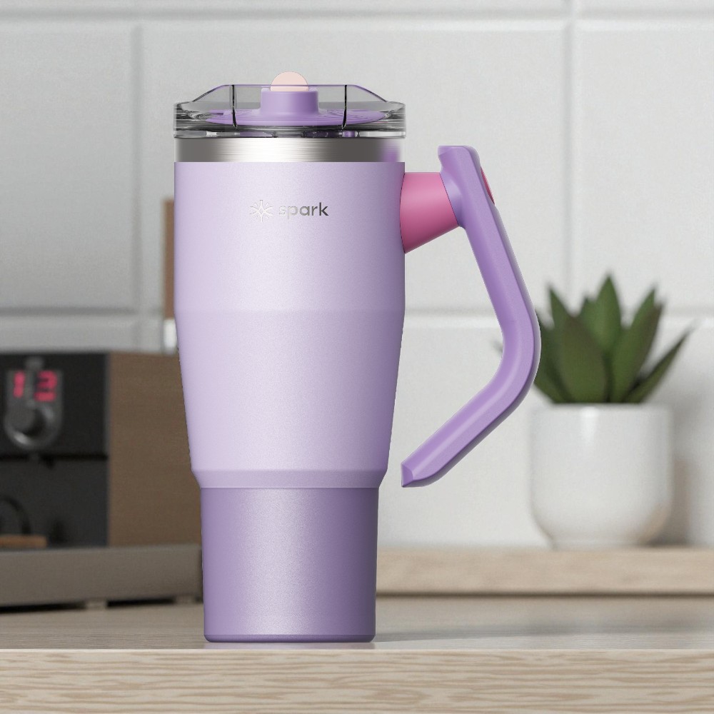 This Spark Turner Vacuum Flask is available in four colors: purple, blue, black, and pink.
