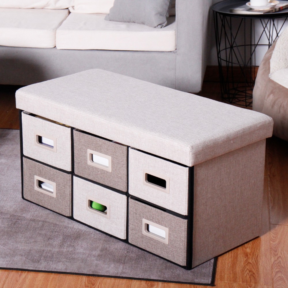 Untuk lebih menghemat tempat lagi, gunakan storage box lipat dengan desain modern. Seperti Stora Bangku Ottoman Lipat Fabric dengan 6 Laci yang bisa menyimpan banyak barang sekaligus. Selain itu, bisa digunakan juga untuk tempat duduk tambahan dan ketika tidak digunakan, kamu bisa melipatnya.